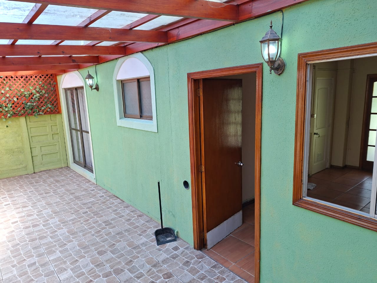 4 dormitorios, 1 en suite; sala de estar, comedor diario, conserjería, patio con corredor luminoso.